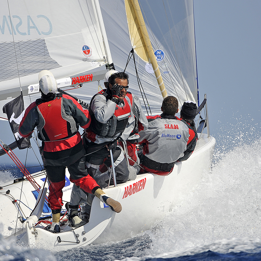 Blue Moon is the master of the World Ranking Champion Classe “Melges 24”. The Swiss boat manned by a highly experienced team: Franco Rossini shipowner, with Flavio Favini at the helm, Matteo Ivaldi calling tactics, Tiziano Nava, Stefano Rizzi to the sheets, winning for the third time, second row, the ranking of the World's category...