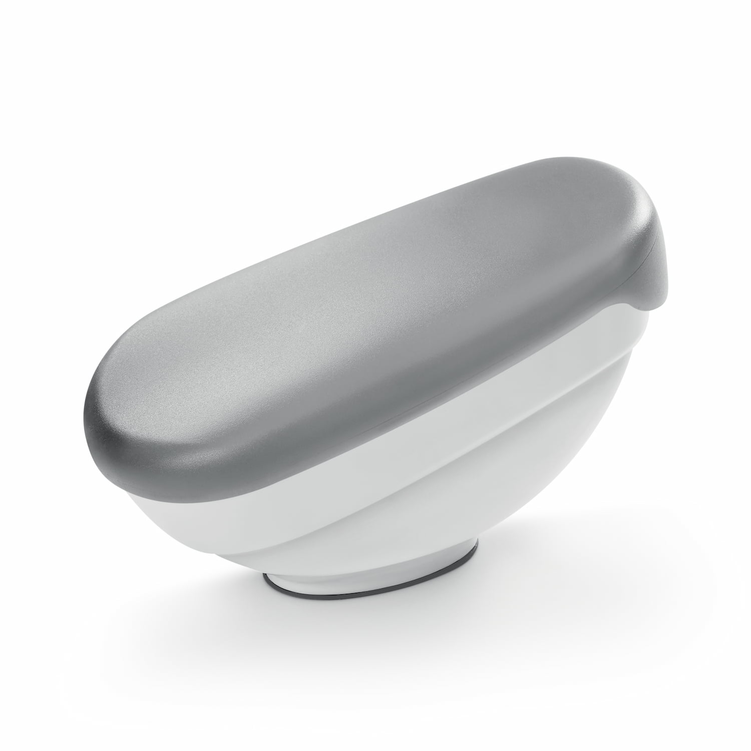The container features a side opening with a pouring spout, allowing you to directly dispense the grated food.