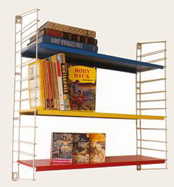 The year is 1950, the Dutch nation, as in many others, you can still feel the austerity of the war years. Tomado launches a bookshelf library made in wire which whilst having a low price to match the lifestyle of that time, is innovative, practical and good design. With the wire sides structure in black and racks in primary colours this bookshelf brings a touch of modernity to the early post war years.